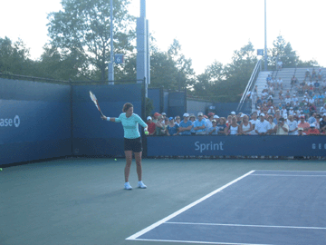Lindsay Davenport warming up